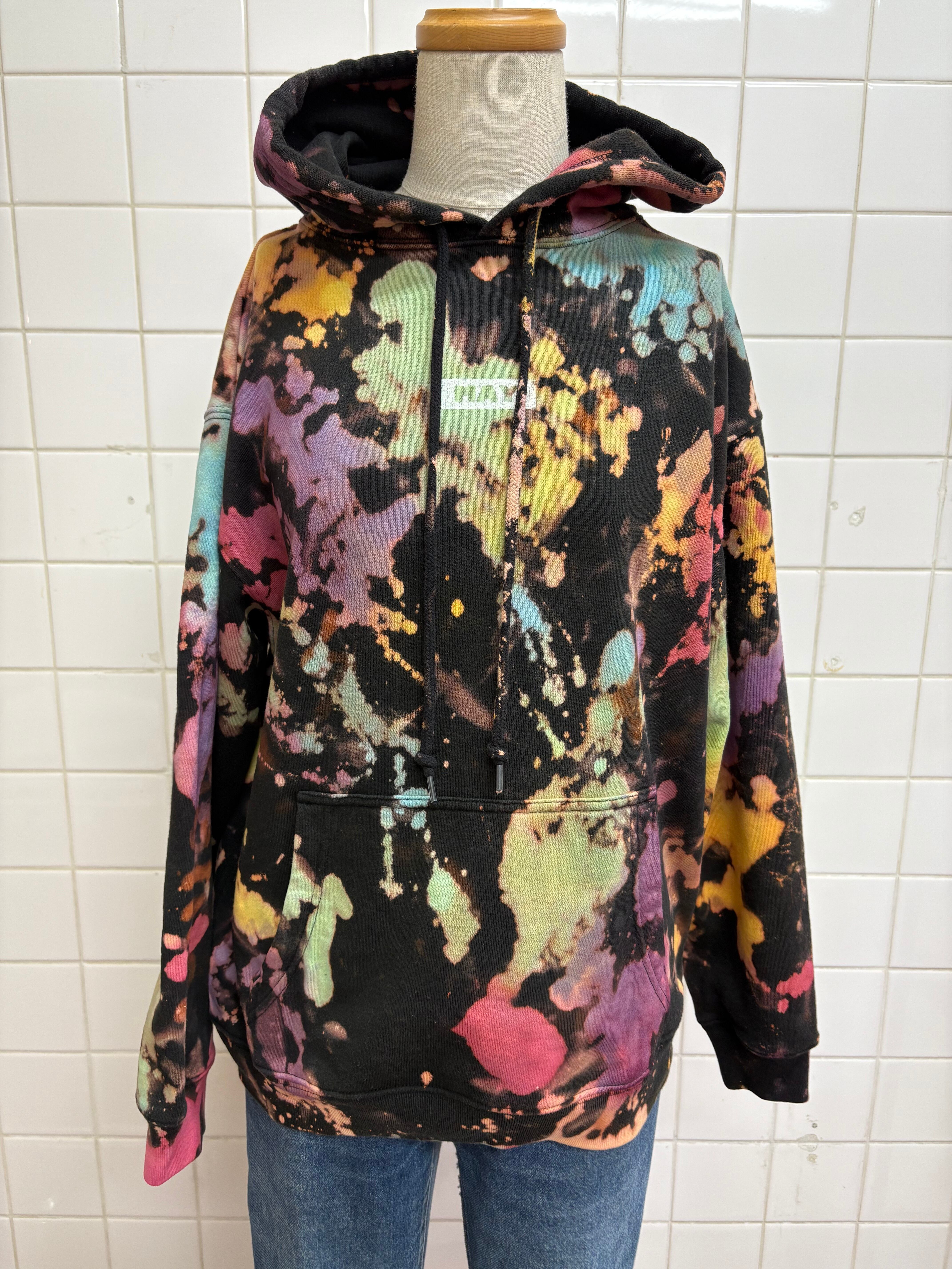 一枚ずつ手作業でブリーチ加工を施した後に更に色を入れて仕立てている唯一無二のデザインです。
